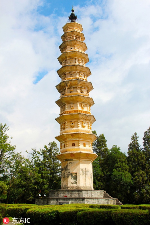 Built in Nanzhao Kingdom of Tang Dynasty (883-840), Qianxun Pagoda – the main pagoda, is 69.13 meters high. Other pagodas to the north and south, both with heights of 42.19 meters, were built during the reign of Duan Zhengyan and Duan Zhengxing in the kingdom of Dali (1108-1172).