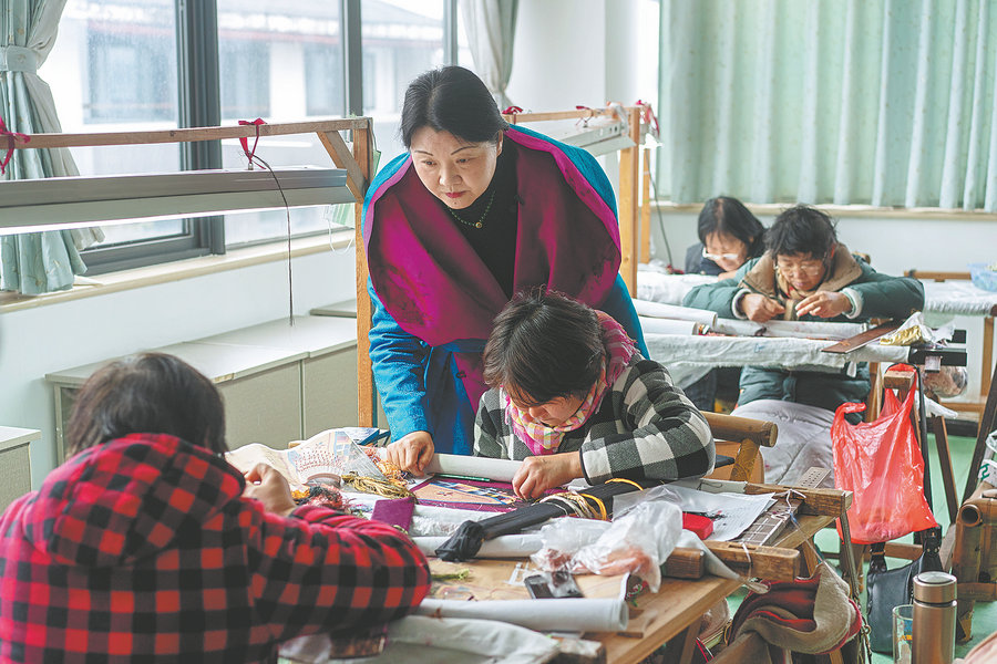 Sitting in her studio in Suzhou, where large-size embroidery pieces of flowers, birds and animals hang on walls, the 59-year-old says that, for her, Su embroidery is a kind of art that decorates life. Exquisite silk cellphone bags, fan bags, clothes with Su embroidery patterns, accessories, floor screens, and even furniture, are among her range of products.