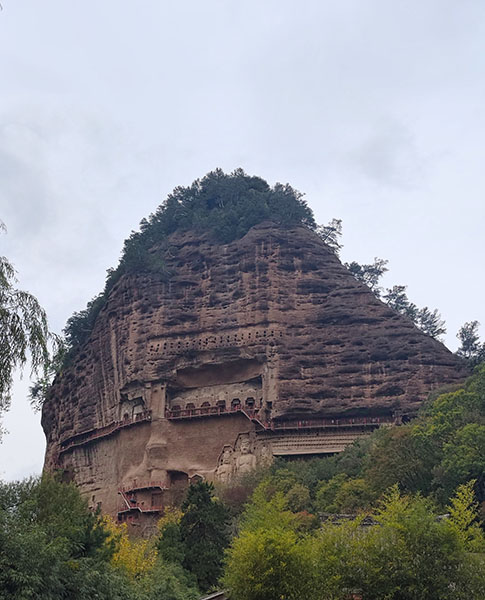 Maiji Mountain scenic area, which covers 215 square kilometers, is located in Tianshui, Gansu province. The scenic area includes many tourist attractions, such as Maiji Mountain Grottoes, Immortal Cliff (Xianren Ya) and Stone Gate (Shi Men).