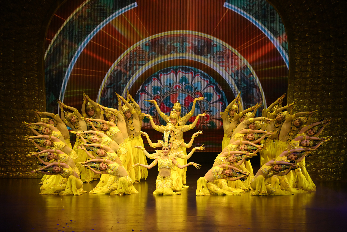 As the show unfolds, the stage becomes a vivid tapestry that reflects Dunhuang's rich history as a key stop along the ancient Silk Road. The choreography and design are deeply rooted in Dunhuang's iconic Buddhist heritage, seamlessly merging ancient symbolism with modern performance art to deliver an awe-inspiring visual and auditory experience.